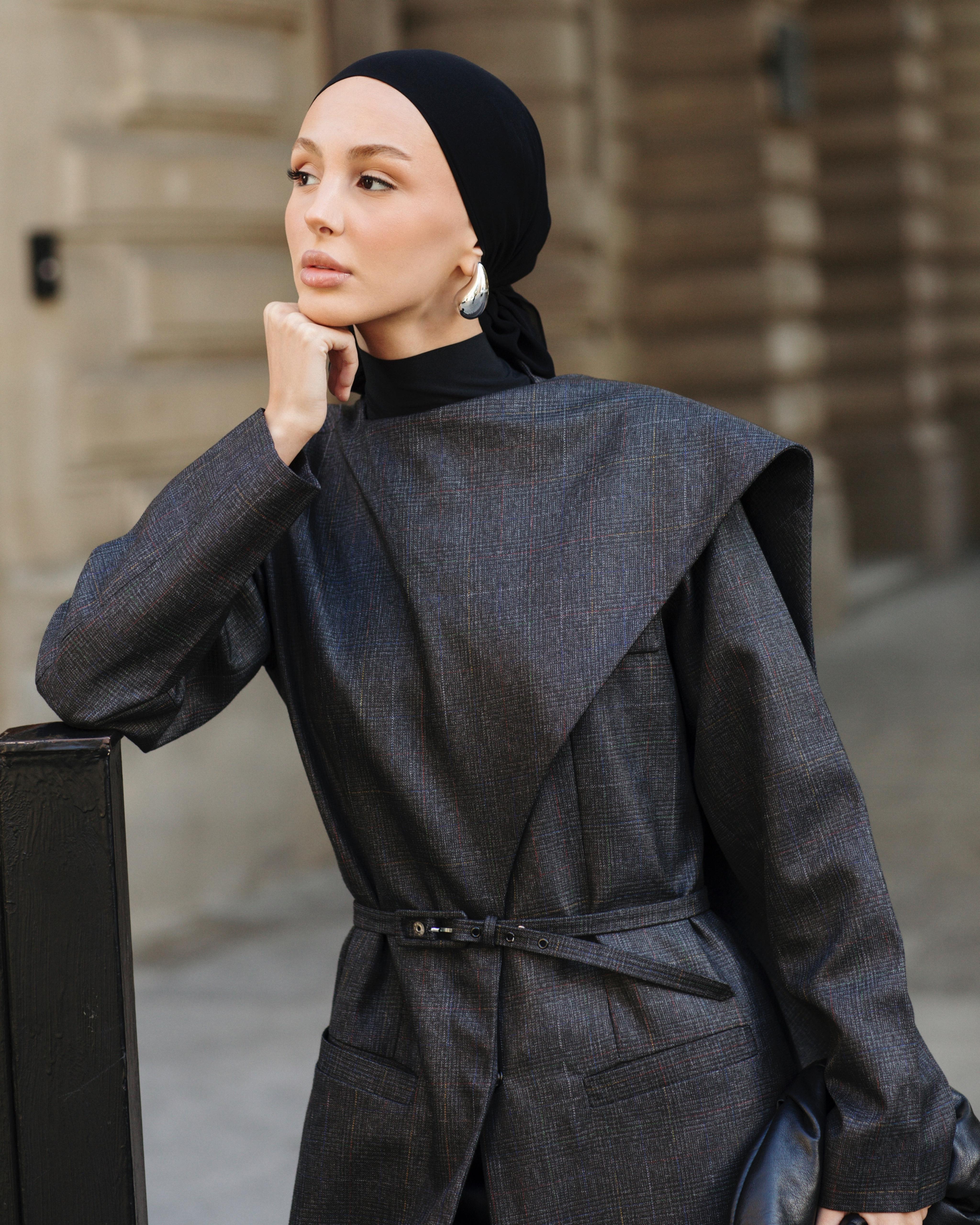 Jacket with a belt made of warm cashmere fabric.